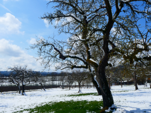 Das andere Extrem stellen die alten Streuobstwiesen dar, die häufig gar nicht mehr bewirtschaftet werden. Schon seit den 60er Jahren gilt die Erzeugung von Tafel- und Mostobst auf der Streuobstwiese als nicht rentabel, da der Ernteaufwand und die Pflege zu kostenintensiv sind. Wichtigstes Argument der modernen Landwirtschaft: Auf Großen Bäumen ist kein Pflanzenschutz möglich - Ohne Pflanzenschutz kein sicherer Ertrag - ohne sicheren Ertrag - kein Geschäftsmodell. So wurden viele alte Wiesen aus der Bewirtschaftung genommen und kein Gift mehr gespritzt. Dies führt dazu, dass Streuobstwiesen zu den artenreichsten Biotopen Europas zählen, denn wo kein Gift, sondern ungestörte Lebensräume, da brummt die Vielfalt!