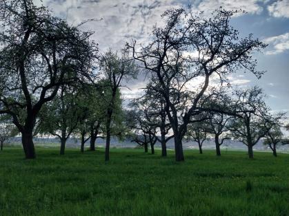 Das Wort Streuobst kommt davon, dass Obstbäume in früheren Zeiten “verstreut” in der Landschaft standen und so ganze Landstriche und ihre Kultur in Mitteleuropa davon geprägt waren.